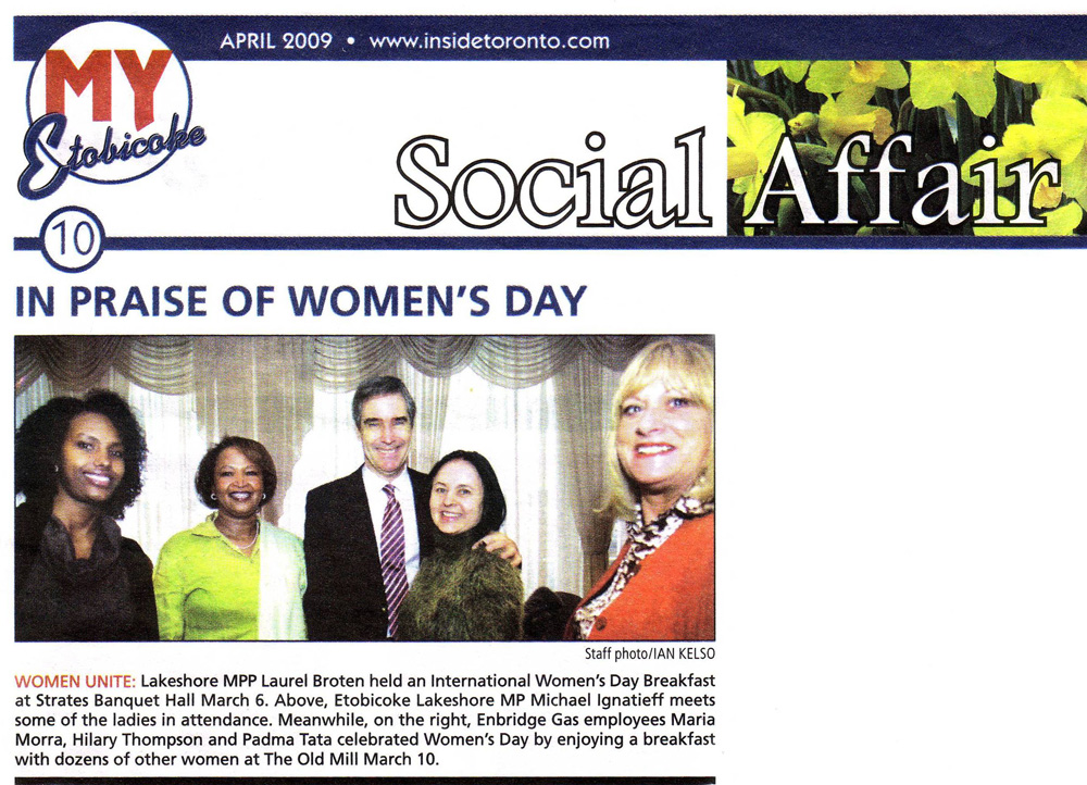 - The International Womens' Day Breakfast in Etobicoke - March 6, 2009.